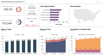 These sample dashboards let you gain deep insights into real estate business operations through monitoring various KPIs and improve overall productivity.